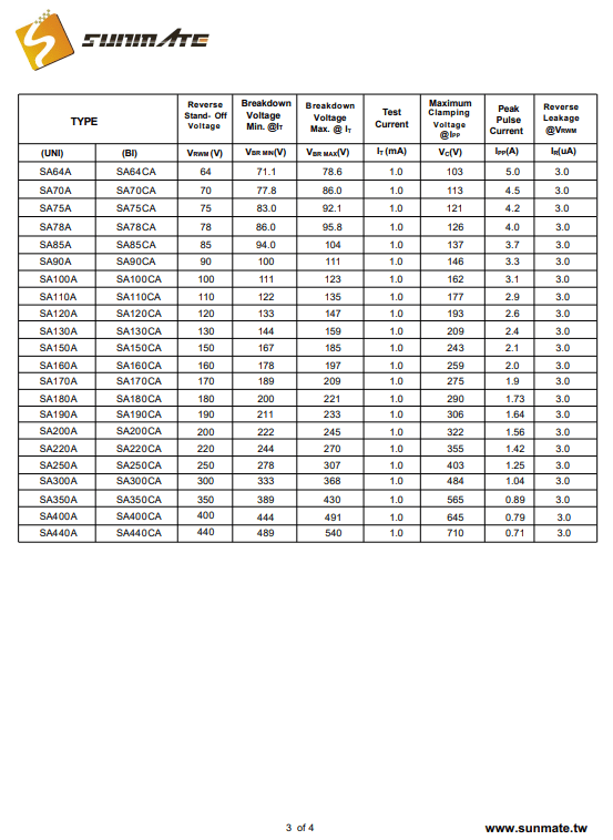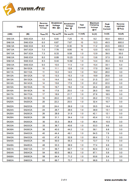 SA30CA双向 TVS瞬态抑制二极管,生产商: SUNMATE/森美特
