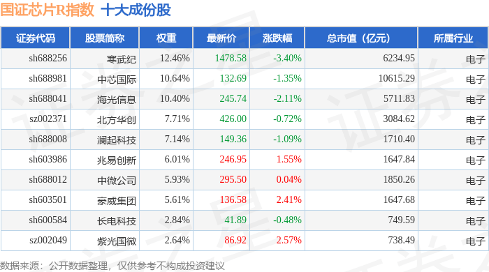 证券之星消息,10月28日,国证芯片R(480017)指数报收于15037.14点,跌0.78%,成交1100.51亿元,换手率3.61%。当日该指数成份股中,上涨的有13家,卓胜微以2.69%的涨幅领涨,下跌的有17家,盛美上海以4.2%的跌幅领跌。