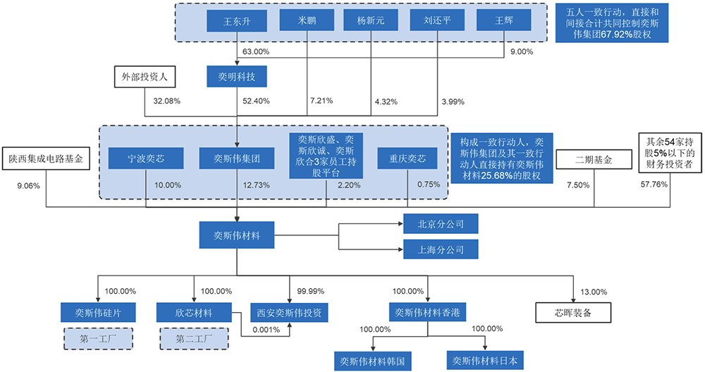 西安奕材的实际控制人,是中国半导体显示龙头企业京东方的创始人王东升,以及米鹏、杨新元、刘还平四人。