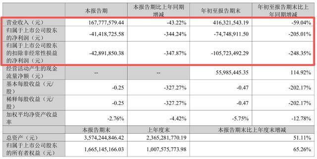 其中,第三季度,公司实现营收1.68亿元,较去年同期大幅下滑43.22%;归属于母公司净利润亏损高达4141.87万元,同比骤降344.24%。与二季度716.01万元的亏损相比,三季度公司亏损环比扩大逾5倍。