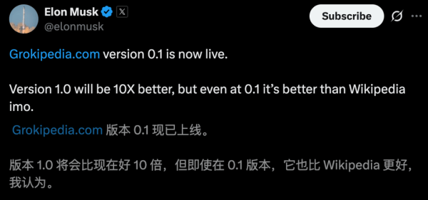 马斯克亲手放出“开源版”维基百科,Grokipedia V0.1