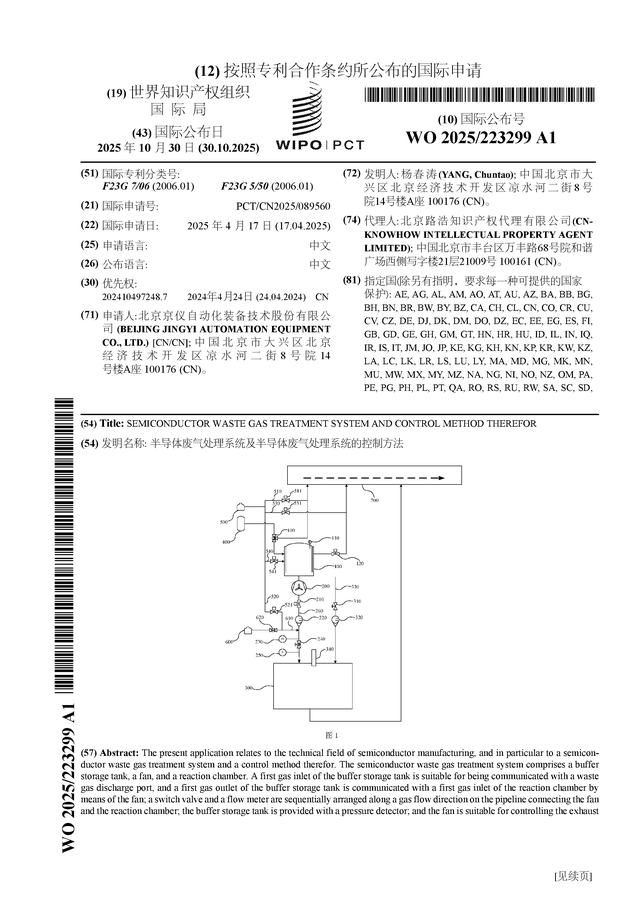 证券之星消息,根据企查查数据显示京仪装备(688652)公布了一项国际专利申请,专利名为“半导体废气处理系统及半导体废气处理系统的控制方法”,专利申请号为PCT/CN2025/089560,国际公布日为2025年10月30日。