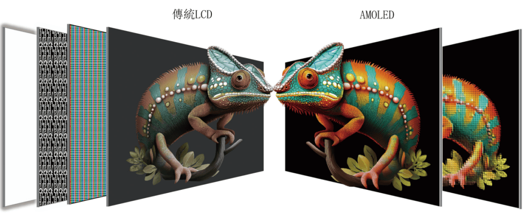 据悉,AMOLED是一种主动矩阵有机发光二极管,通过精确控制电流,形成电场,使OLED有机材料中的电子和空穴发射可见光,从而实现自发光。