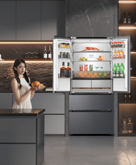 如果你是追求家居颜值的烹饪达人,或是大户型高端家庭,这款以“瑶光奢居美学”为核心的冰箱会很契合。它从北斗“瑶光”星中汲取设计灵感,星灰色瑶光锦高奢面板融合云锦光泽,搭配AG镀膜肤感材质,触感沉稳温润,嵌入橱柜后不仅不突兀,反而像一件精致艺术品,瞬间提升厨房整体格调。