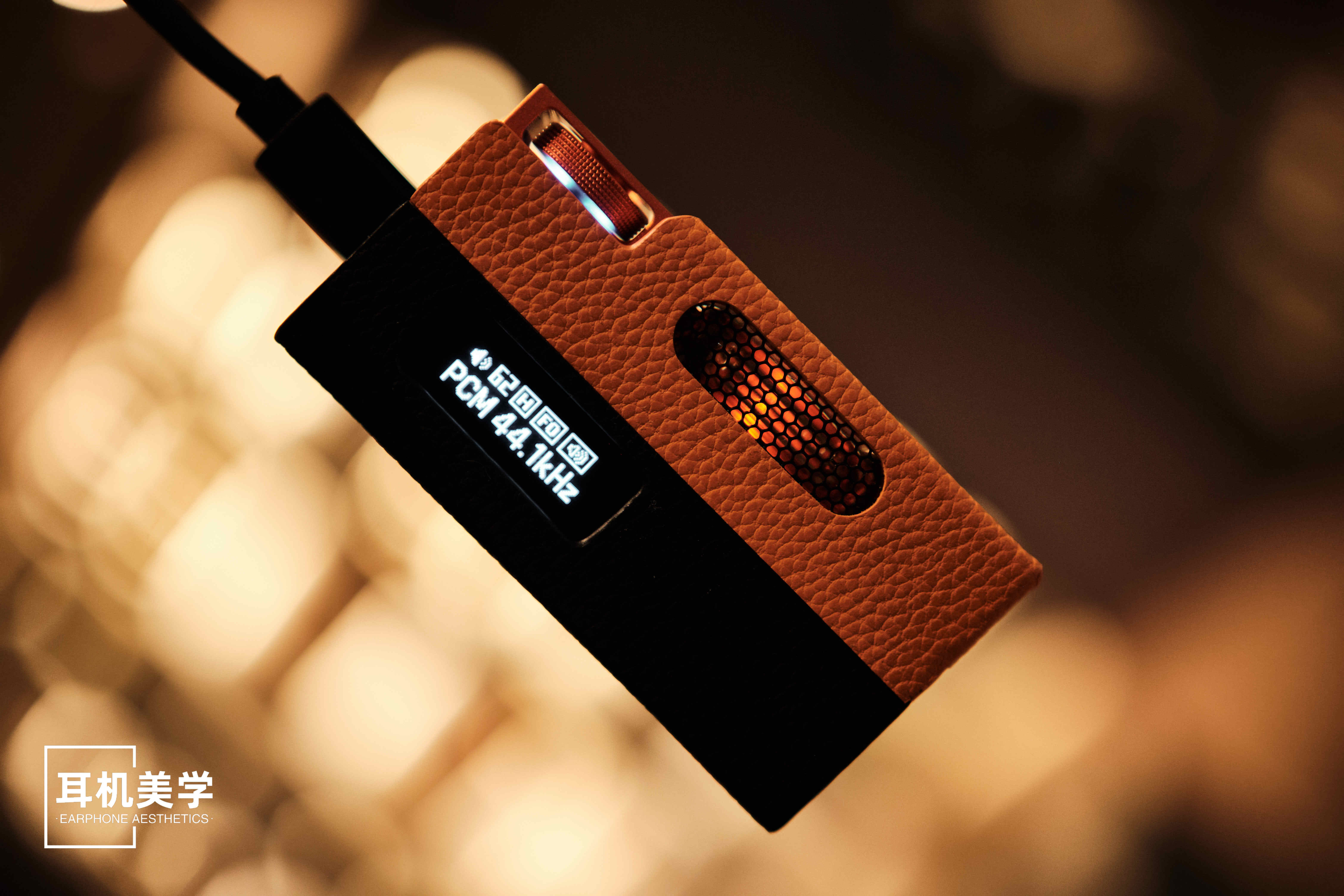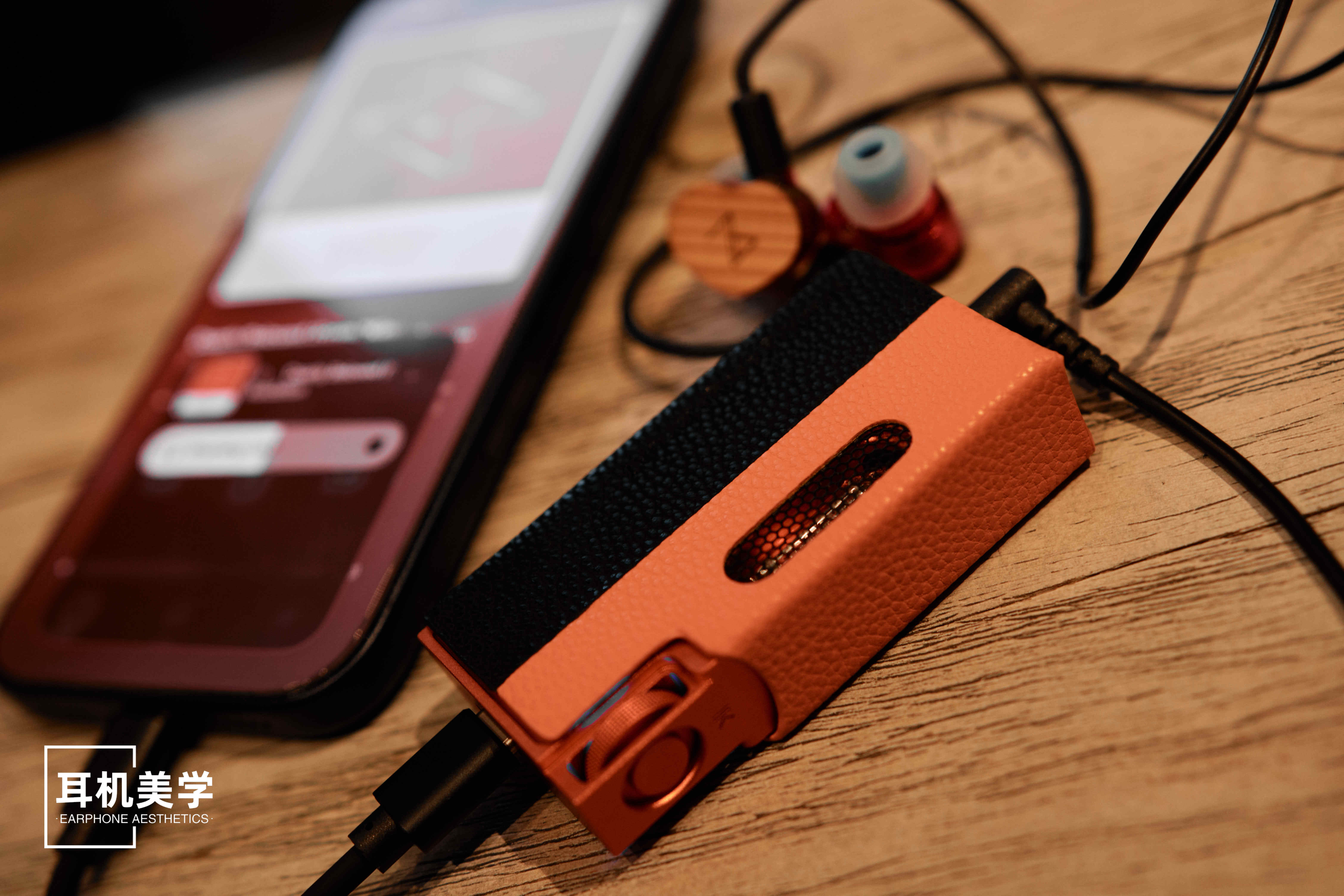 至于另一个无法回避的问题——是否“易碎”?这确实是UA7这种设计的现实风险。电子管终究是精密元件,外层玻璃罩若使用不当或对器材不够爱护,大手大脚的确实存在损坏的风险。不过,山灵在这方面也考虑得十分周到,也做了预备方案——他们为 UA7 定制了一款皮套来提供额外的保护。皮套提供两种配色可选:橙色拼黑与紫色拼黑。这款黑橙配色我觉得是与三种机身颜色都能在观感上很好的协调和融合的。皮套本身有一定的硬度与重量,手感扎实,在电子管区域还特别设计了金属防护窗。这样不仅保证了电子管的散热与灯光可视效果,同时也提供了有效的防护,让人日常使用的更安心一些。