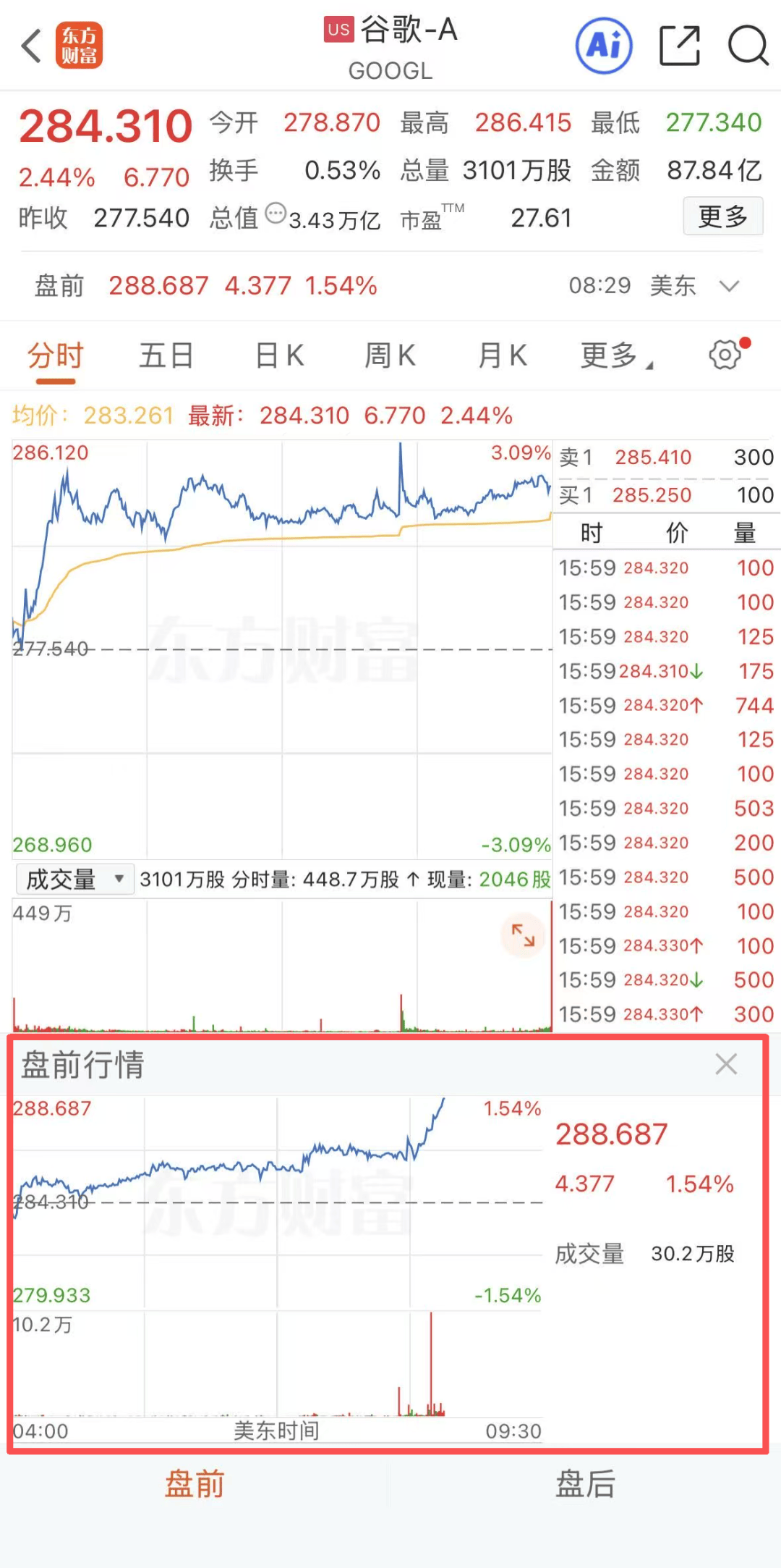 美股盘前,谷歌直线拉涨,截至发稿涨1.54%。