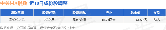 近10日内中关村A(399422)指数成份股做了调整,新纳入了1只股票。