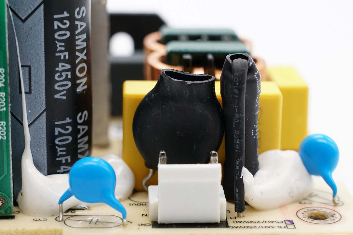 旁边为抑制上电浪涌电流的NTC热敏电阻。