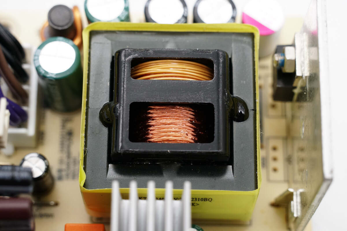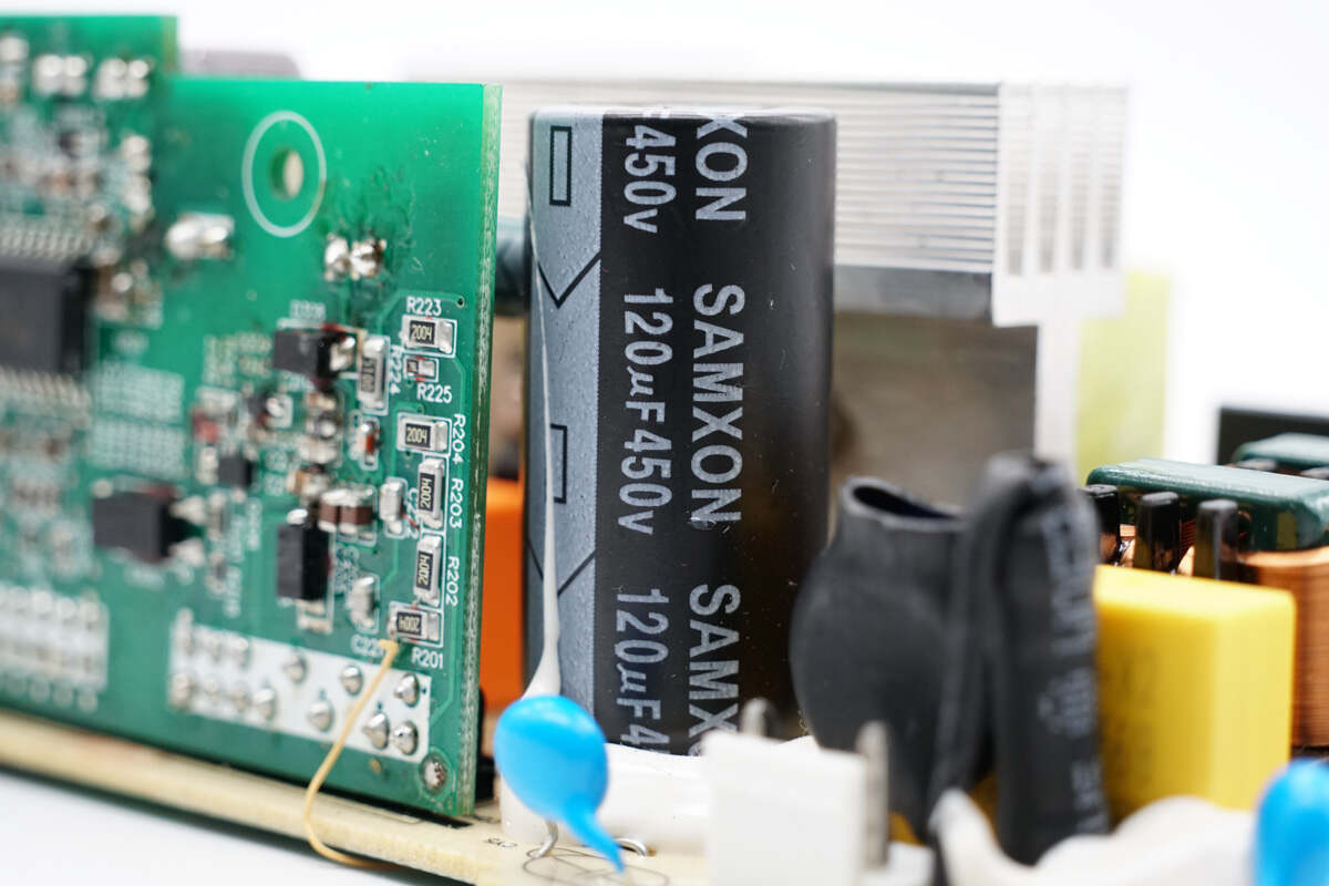 方案输出端一览,焊接固态电容、滤波电容、LLC谐振电感、LLC差模电感。