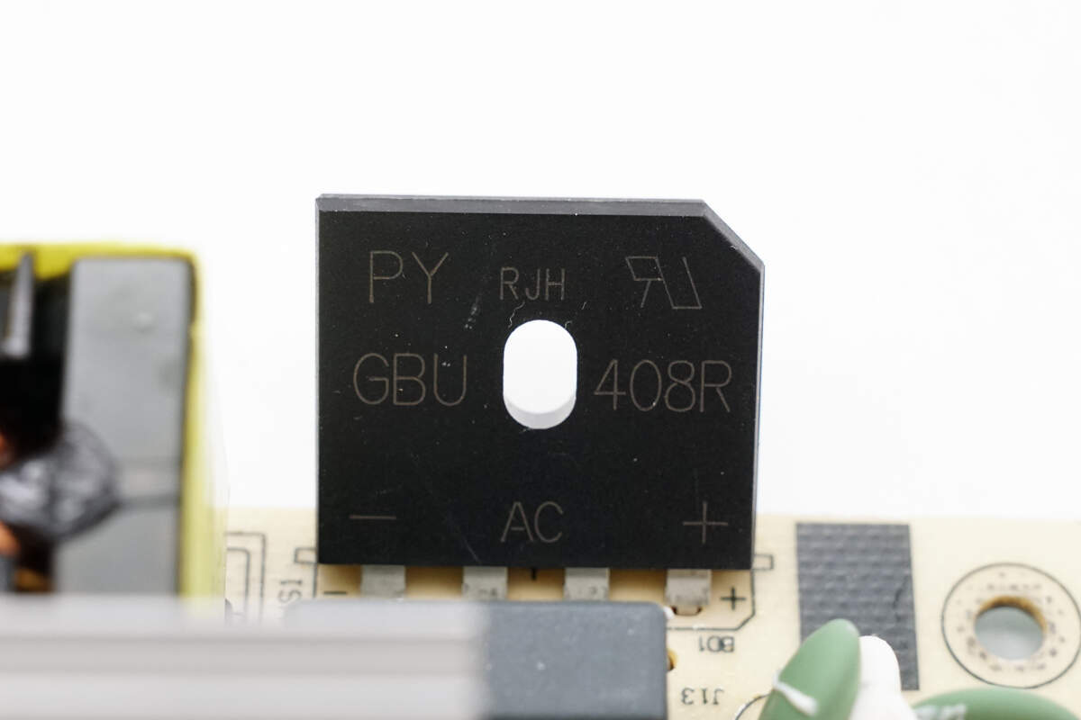 充电头网通过解析了解到,输入端采用凯励 0.68μF/0.22μF 安规 X2 电容、两级共模电感、整流桥及 NTC 热敏电阻,构建 EMI 滤波与浪涌抑制电路,PFC 部分选用士兰微 600V 耐压 SVFP10N60CAFJ 开关管与专用升压电感,LLC 部分搭配光宝 MBR3045CT 开关管及谐振元件;输出端配备 120μF450V 高压电容、16V470μF 固态电容等滤波器件,通过亿光 817、光宝 LTV-1009-TP1-G 光耦实现反馈控制,伟诠 WT7658P 芯片提供输出过压、过流保护。
