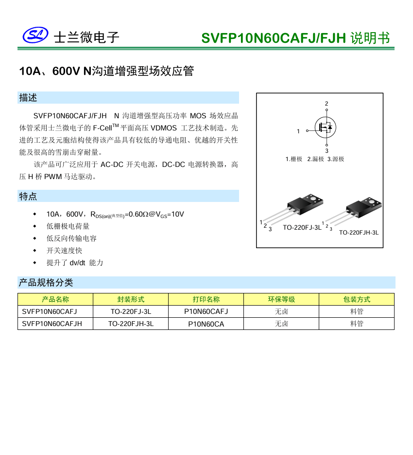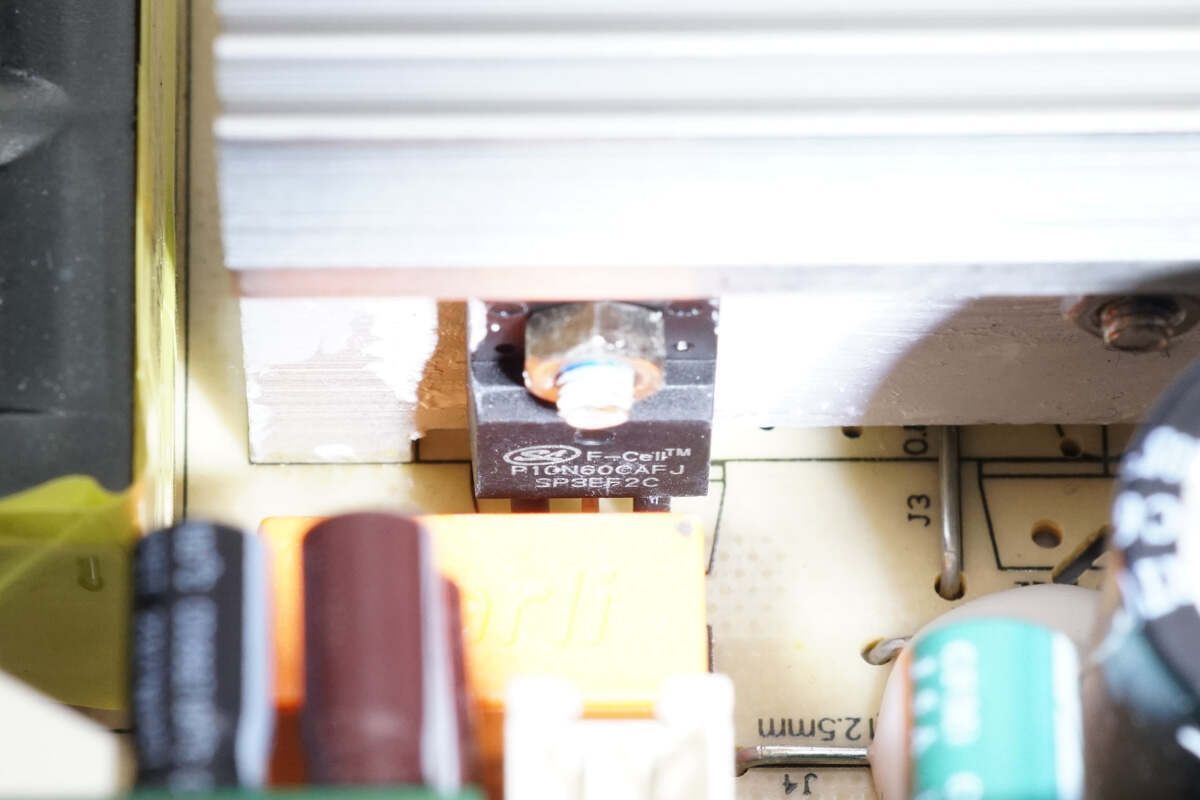 PFC开关管丝印P10N60CAFJ,实际型号SVFP10N60CAFJ,来自Silan士兰微电子,耐压600V,采用TO-220FJ-3L封装。使用螺丝固定在散热金属片上。