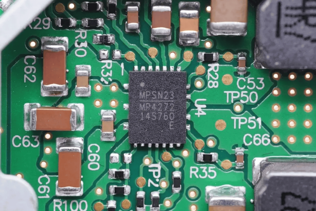 作为特斯拉电动汽车的前装车充,这款车充用料相当不错。输入端采用KEMET车规级高压聚合物电容搭配多颗1210和1206封装的MLCC滤波,并使用全套MPS的车规级芯片进行降压和协议控制。MPQ4272作为双路独立的同步降压转换器,搭配两颗MPQ5031进行独立的接口控制,实现双口独立输出,支持最大36W PD快充,可盲插使用,十分方便。