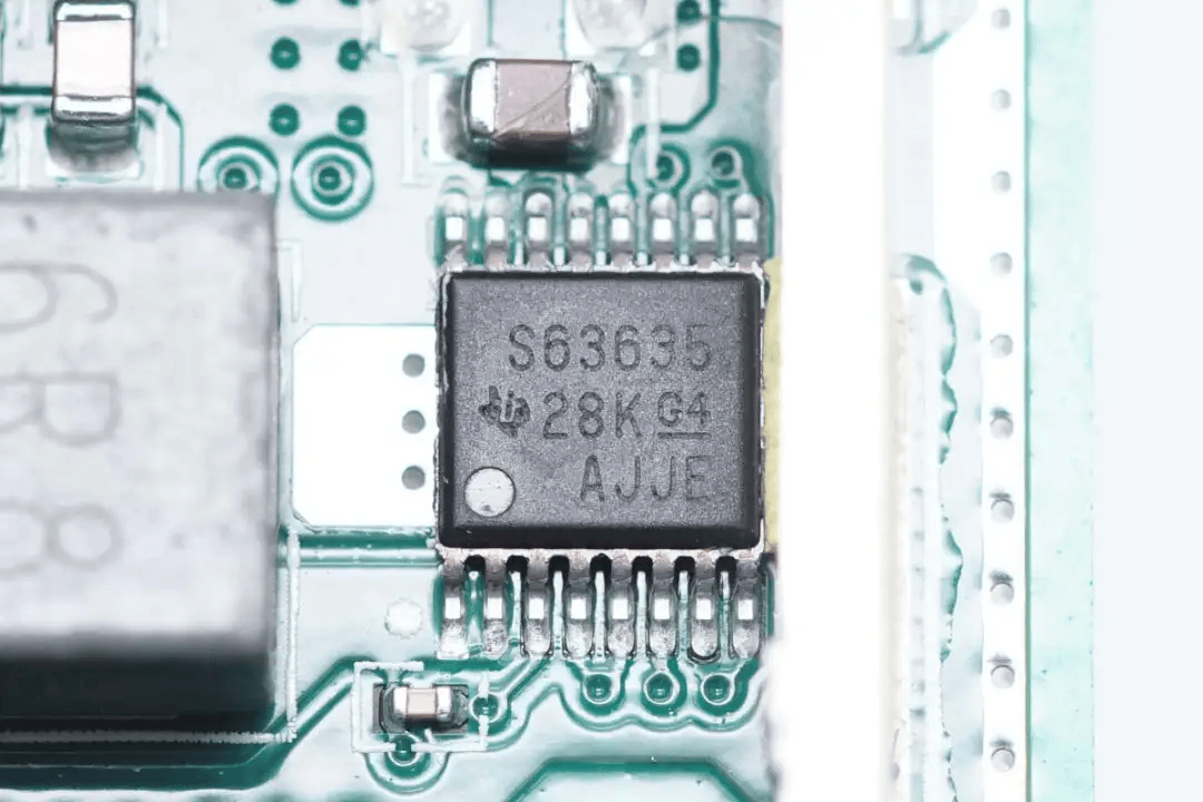 清理掉导热凝胶,同步降压芯片来自TI德州仪器,丝印S63635,内部集成开关管,采用散热增强的HTSSOP16封装。