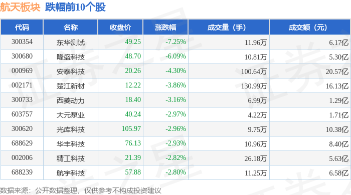 证券之星消息,11月7日航天板块较上一交易日上涨0.29%,乾照光电领涨。当日上证指数报收于3997.56,下跌0.25%。深证成指报收于13404.06,下跌0.36%。航天板块个股涨跌见下表: