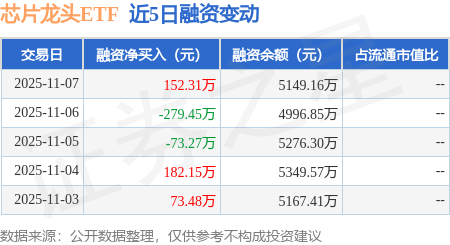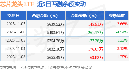 证券之星消息,11月7日,芯片龙头ETF(516640)融资买入540.44万元,融资偿还388.13万元,融资净买入152.31万元,融资余额5149.16万元。