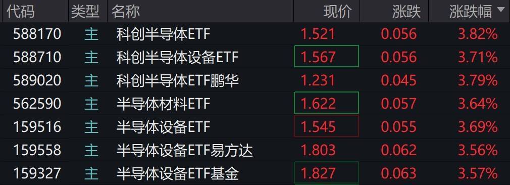受盘面影响,半导体设备相关ETF涨超3%。