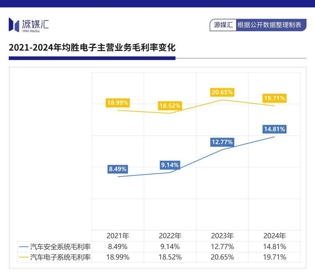 目前,均胜电子的业务主要分为汽车电子系统和汽车安全系统两大板块。汽车安全业务是公司的“压舱石”,2024年,该业务实现主营业务收入386亿元,同比微增0.23%,占总营收比例约70%。