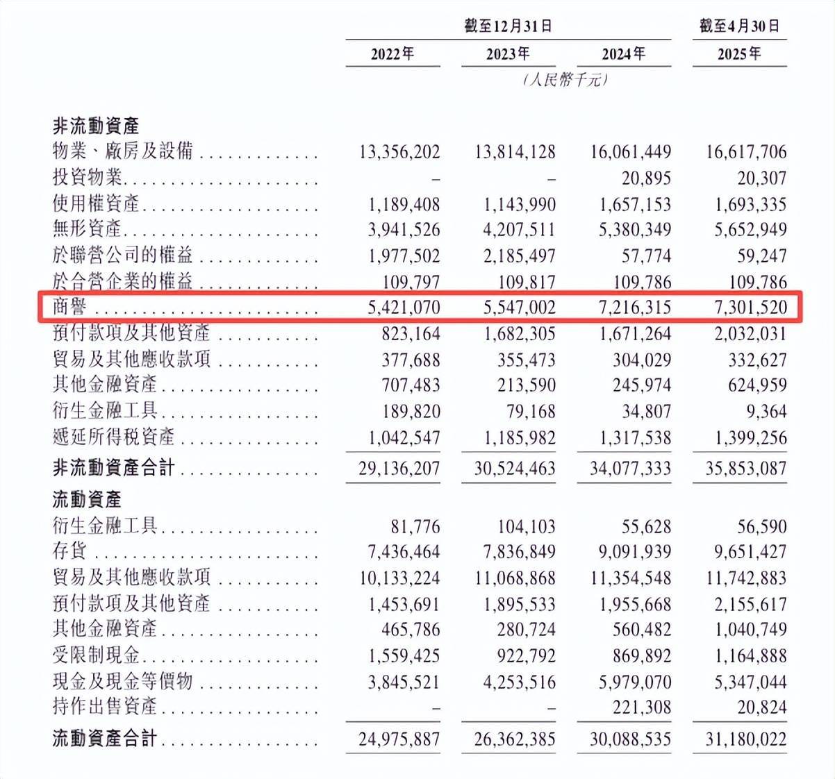 频繁并购还带来了巨额商誉。截至2025年4月30日,均胜电子的账面商誉约73.02亿元,占同期非流动资产的20.37%。