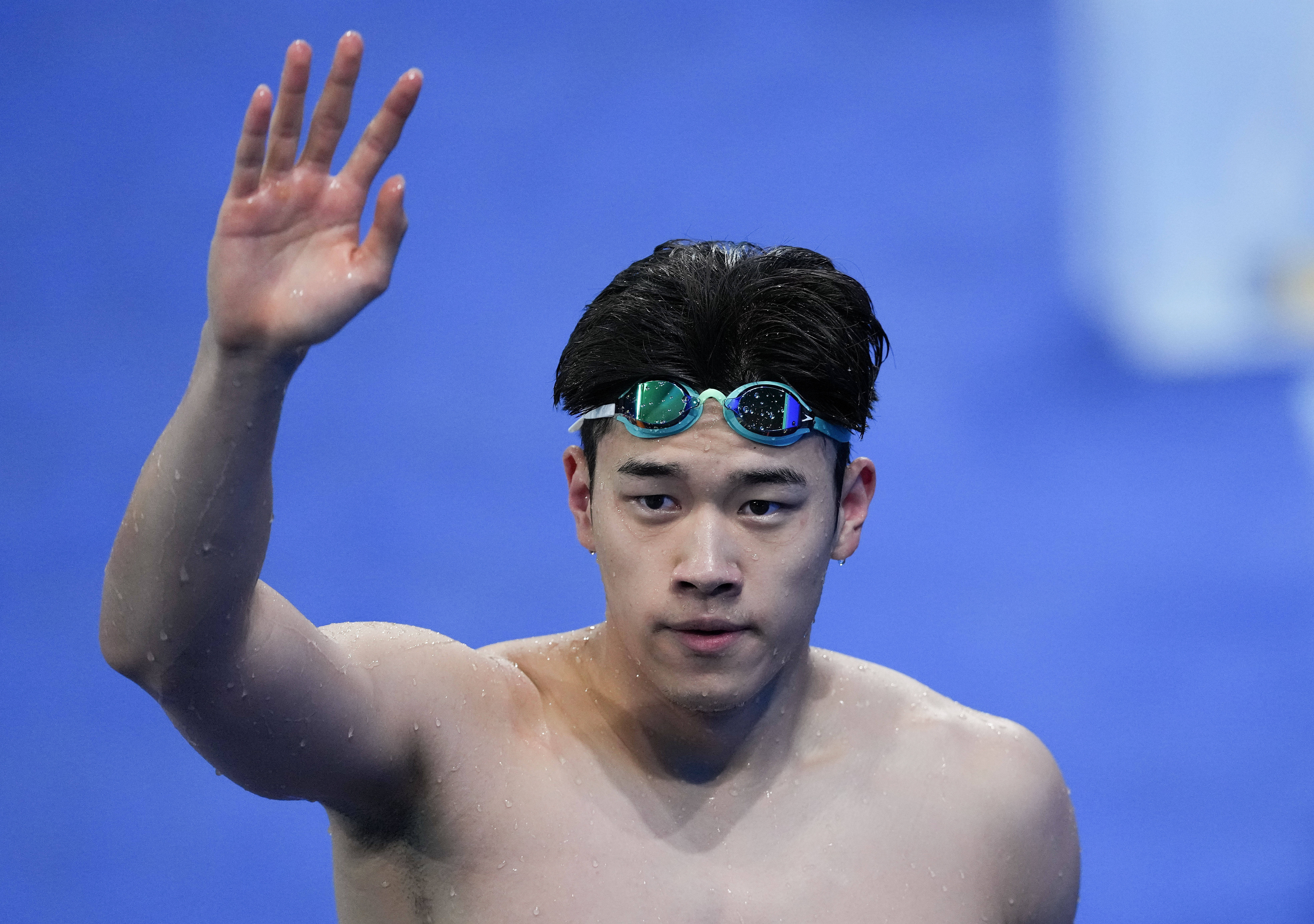 新华社照片,深圳(广东),2025年11月13日 11月13日,浙江队选手潘展乐在比赛后。他晋级决赛。 当日,第十五届全国运动会游泳男子100米自由泳半决赛在广东省深圳市举行。 新华社记者 薛宇舸 摄
