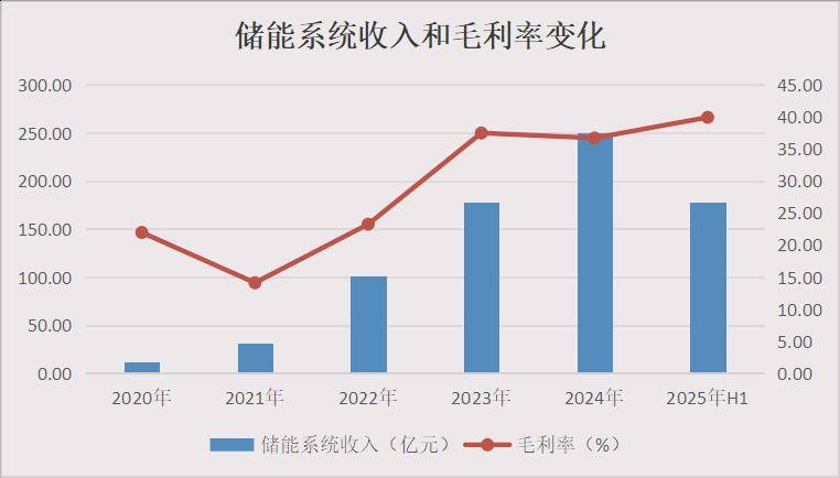 这就使得储能系统收入在2025年上半年猛增到178亿元,同比增长128%,占总营收接近41%。