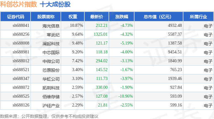 证券之星消息,11月14日,科创芯片(000685)指数报收于2525.25点,跌3.2%,成交584.93亿元,换手率1.91%。当日该指数成份股中,上涨的有8家,中科蓝讯以4.77%的涨幅领涨,下跌的有42家,佰维存储以10.96%的跌幅领跌。
