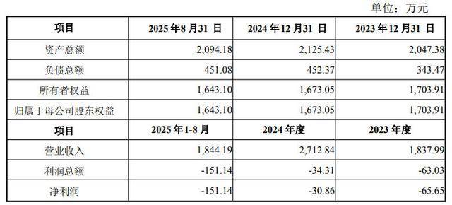 财务数据显示,2023年至2025年前八月,奥简微电子的营业收入分别为1837.99万元、2712.84万元、1844.19万元;净利润持续为负,数据分别为-65.65万元、-30.86万元、-151.14万元。