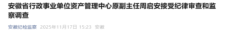安徽省行政事业单位资产管理中心原副主任周启安涉嫌严重违纪违法,目前正接受安徽省纪委监委驻省财政厅纪检监察组纪律审查;经安徽省监察委员会指定管辖,接受滁州市全椒县监察委员会监察调查。