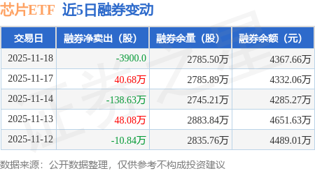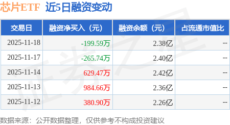 证券之星消息,11月18日,芯片ETF(512760)融资买入2474.85万元,融资偿还2674.44万元,融资净卖出199.59万元,融资余额2.38亿元,近20个交易日中有11个交易日出现融资净买入。