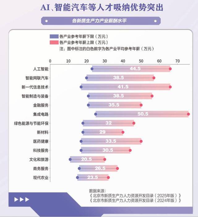 新京报记者对比发现,与2024年相比,今年《目录》核心开发领域从60个精简至58个,人工智能从新一代信息技术中独立成列;同时,“专家”一词出现频次由28次增至31次,参考年薪区间整体上移。这些变化释放出明确信号——北京的人才需求正进一步向尖端人才聚焦。