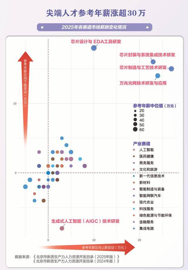 芯片封装与系统集成技术研发、芯片设计与EDA工具研发的参考年薪平均值也分别上升19.5万元和14万元,使芯片三大核心赛道成为北京招聘市场中“薪酬最高板块”。
