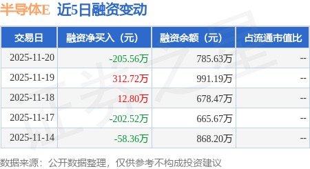 证券之星消息,11月20日,半导体E(159558)融资买入154.41万元,融资偿还359.98万元,融资净卖出205.56万元,融资余额785.63万元。