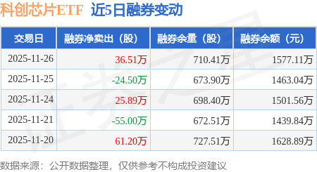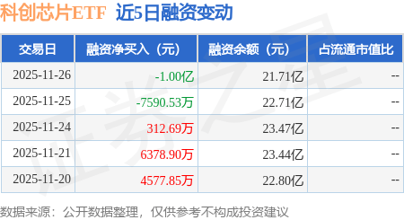证券之星消息,11月26日,科创芯片ETF(588200)融资买入2.21亿元,融资偿还3.21亿元,融资净卖出1.0亿元,融资余额21.71亿元。