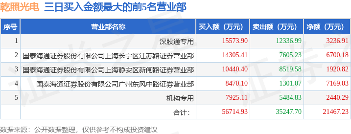 证券小知识:龙虎榜是交易所披露的竞价交易公开信息,现身龙虎榜的个股都是当日最为活跃的个股,是投资者日常重点关注的数据。交易所公布当日买入金额和卖出金额前五名的席位,其中一些席位代表特殊意义,如机构专用席位是指基金专用席位、券商自营专用席位、社保专用席位、券商理财专用席位、保险机构专用席位、保险机构租用席位、QFII专用席位等机构投资者买卖证券的专用通道和席位。深股通专用、沪股通专用为北向资金的交易席位。从龙虎榜数据可以发现和研究机构、游资和散户的资金动向。一些营业部席位经常上榜,市场知名度较高,投资者整理代表散户、游资、量化等不同资金的营业部席位。