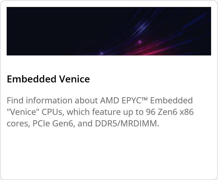 此外,该网站还列出了 EPYC Embedded "Venice" 系列,这将是采用 "Zen 6" 微架构的下一代嵌入式霄龙,可提供至多 96 个核心、DDR5 / MRDIMM 支持、PCIe Gen6 通道。
