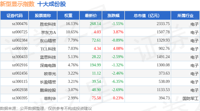 近10日内新型显示(970048)指数成份股做了调整,新纳入了5只股票,剔除了5只股票。