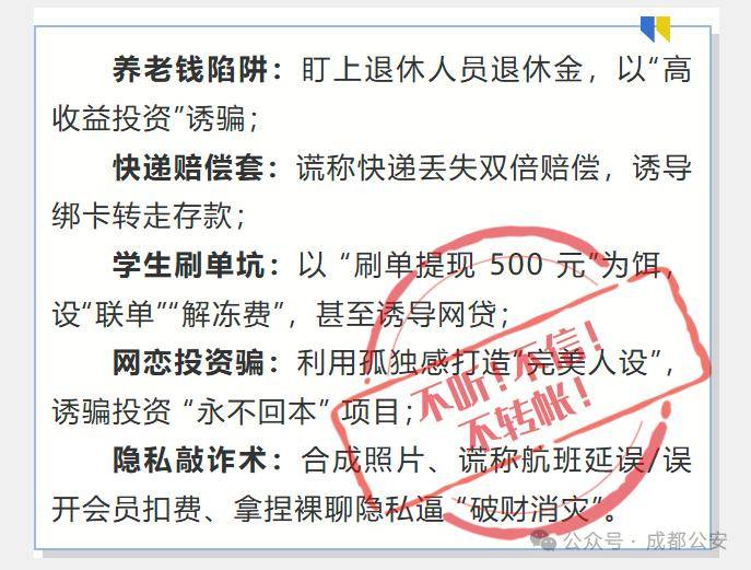 刚拿到退休金,满心盘算着怎么让钱保值增值,骗子早已盯上这笔“养老钱”。一句“高收益、稳赚钱”的投资诱惑,就等着把你的退休金骗个精光!