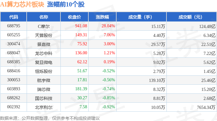 证券之星消息,12月11日AI算力芯片板块较上一交易日下跌1.78%,科德教育领跌。当日上证指数报收于3873.32,下跌0.7%。深证成指报收于13147.39,下跌1.27%。AI算力芯片板块个股涨跌见下表: