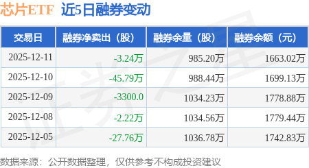 证券之星消息,12月11日,芯片ETF(159995)融资买入6422.96万元,融资偿还6992.26万元,融资净卖出569.3万元,融资余额4.25亿元。