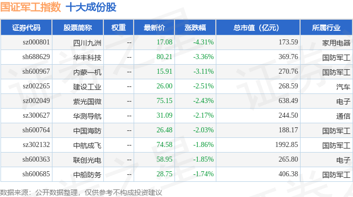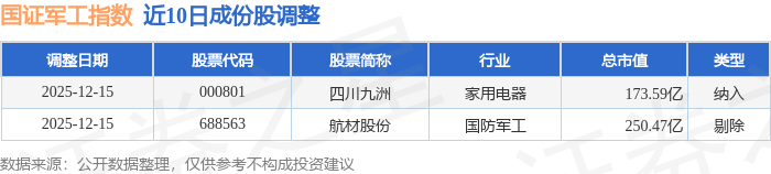 近10日内国证军工(399368)指数成份股做了调整,新纳入了1只股票,剔除了1只股票。