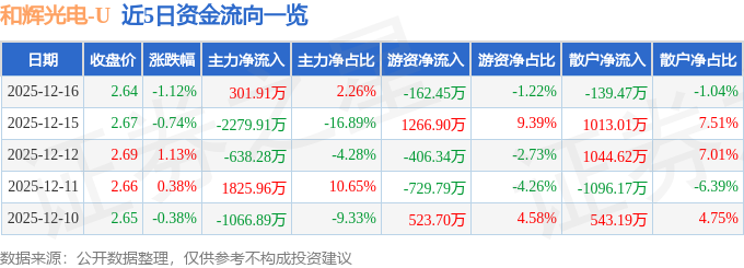 12月16日的资金流向数据方面,主力资金净流入301.91万元,占总成交额2.26%,游资资金净流出162.45万元,占总成交额1.22%,散户资金净流出139.47万元,占总成交额1.04%。