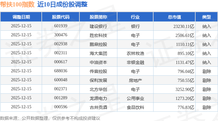 近10日内帮扶100(980065)指数成份股做了调整,新纳入了5只股票,剔除了5只股票。