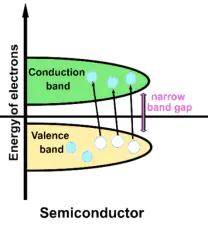 在半导体中,电荷载体的表现形式为“电子–空穴对”,电子的转移需克服禁带宽度(Eg)。