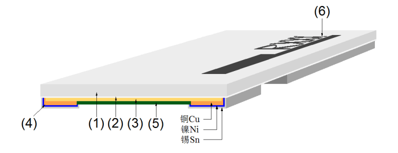 端電極:由锡(Sn)、镍(Ni)、铜(Cu)组成,保障电极的导电性能与抗氧化能力;