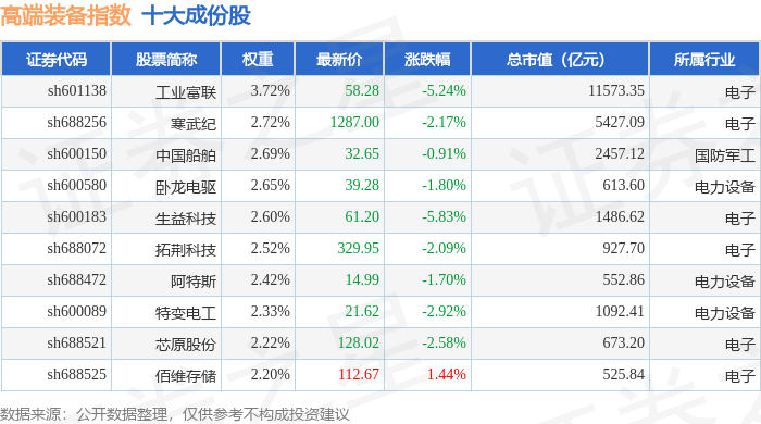 近10日内高端装备(000097)指数成份股做了调整,新纳入了6只股票,剔除了5只股票。