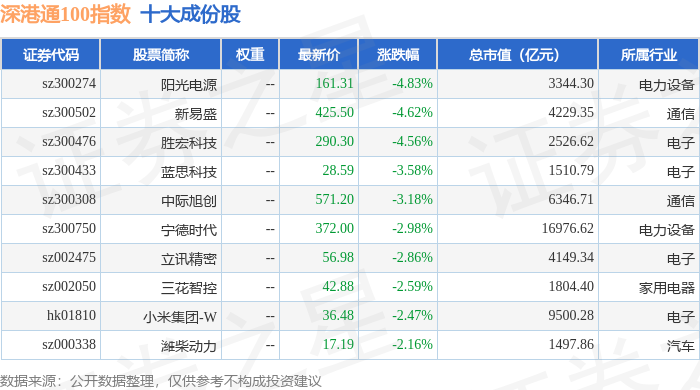 资金流向方面,深港通100(983007)指数成份股当日主力资金净流出合计80.41亿元,游资资金净流入合计29.64亿元,散户资金净流入合计50.78亿元。成份股资金流向详情见下表: