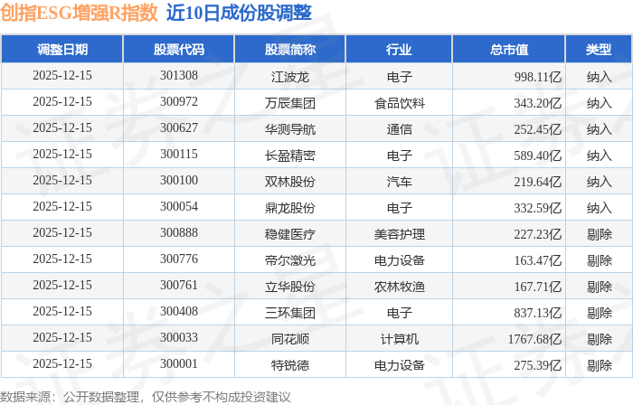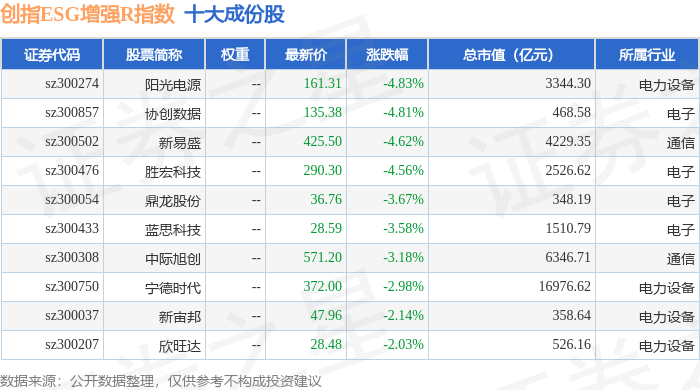 创指ESG增强R(470034)指数十大成份股详情如下: