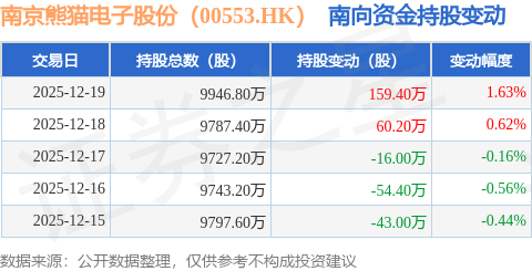 证券之星消息,12月19日南向资金增持159.4万股南京熊猫电子股份(00553.HK)。近5个交易日中,获南向资金增持的有2天,累计净增持106.2万股。近20个交易日中,获南向资金减持的有13天,累计净减持100.0万股。截至目前,南向资金持有南京熊猫电子股份(00553.HK)9946.8万股,占公司已发行普通股的41.09%。