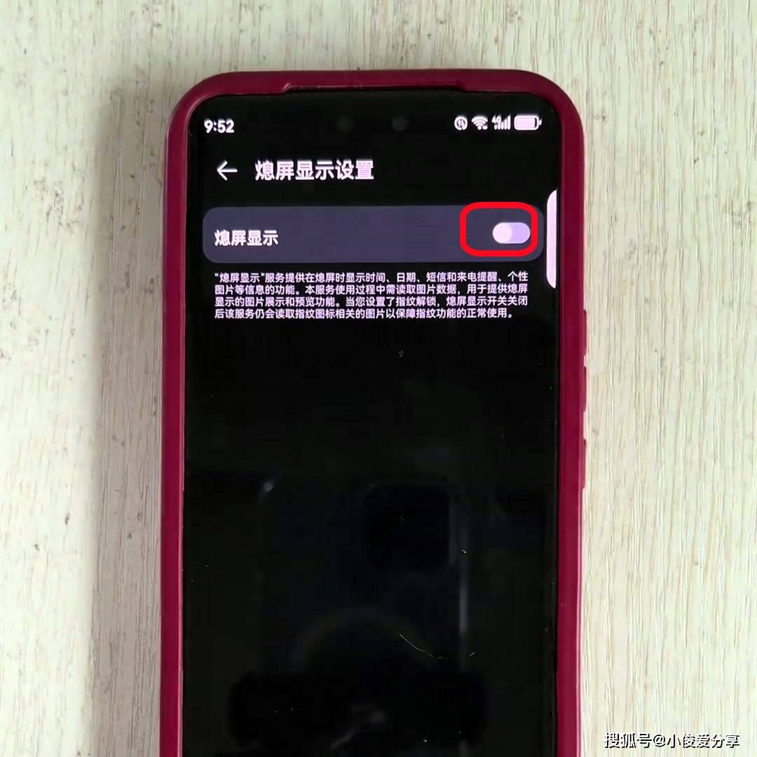 咱们把它点进来,接着滑到最下面,你会看到有四个字,叫做熄屏显示,我们需要把它关掉,因为这个开关打开之后啊,会非常耗电,怎么关呢?点击右上角的四个小点,然后把这个开关关掉就可以了,这是第一步操作。