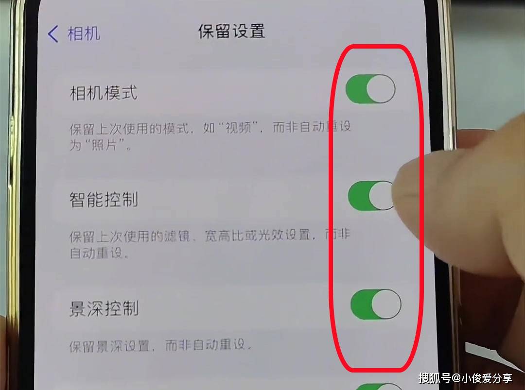 接着往下再返回,返回来之后这里有一个保留设置,点开它。然后把相机模式,智能控制、景深控制这三个开关全部打开,这样设置之后,每次你打开相机,它都会保持你上次使用的专业模式,而不是总重置回普通的“照片”模式,省去反复调整的麻烦。