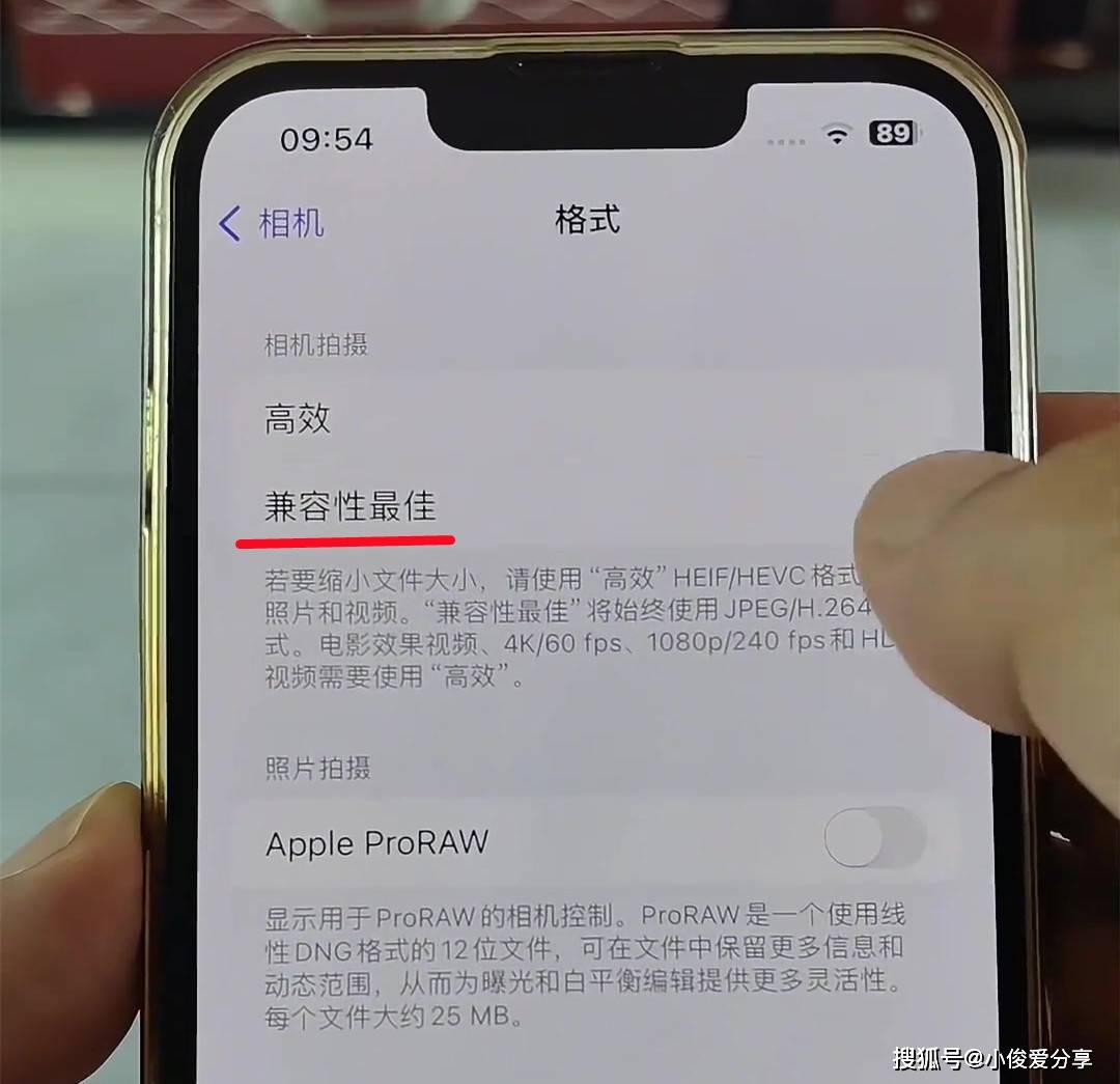 找到相机之后,把它点开,接着我们需要对相机上面的功能进行设置了,找到上方第三个格式,我们把它点开,· 然后把默认的 「高效」 改为 「兼容性最佳」。虽然“高效”格式文件体积小,但“兼容性最佳”模式(通常是JPEG格式)的图片色彩层次更丰富,后期处理空间更大,在各种设备上查看也更方便。